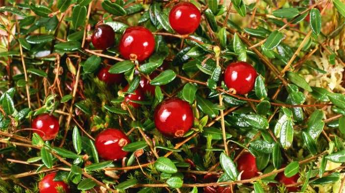 Cranberry: Auxilía na prevenção e no tratamento de infecções urinárias, pois ajuda a impedir a adesão de bactérias ao trato urinário, na prevenção e no tratamento de úlceras no estômago, na redução do colesterol ruim, bem como na prevenção de doenças do coração.