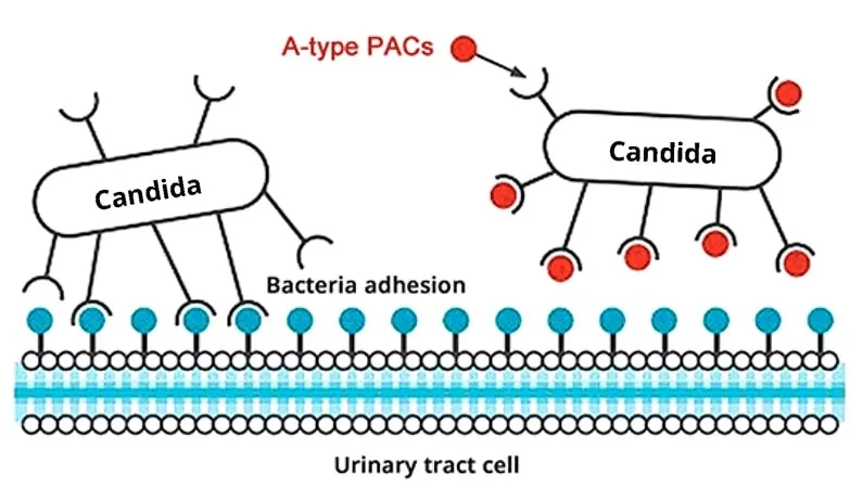 Vários estudos laboratoriais demonstraram em detalhes o quão eficazes são as proantocianidinas do tipo A na redução da pegajosidade fúngica.